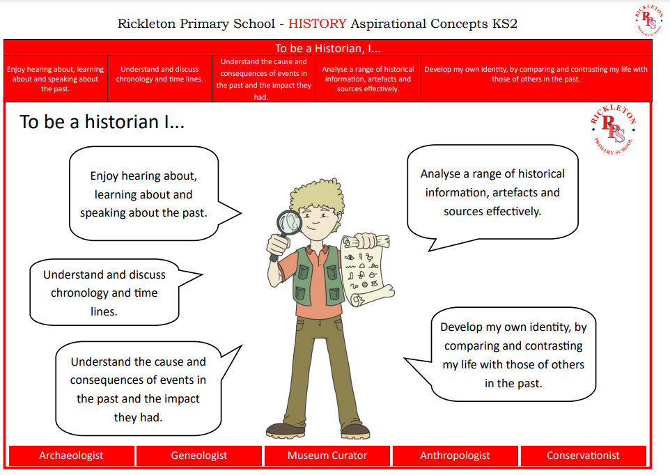In September 2023, we introduced our 'aspirational concepts' to support children and staff to understand the key skills and knowledge which they are building when studying a subject and where this could lead them in their future. We want our children to be driven by their future possibilities and see each lesson as a stepping stone towards this.