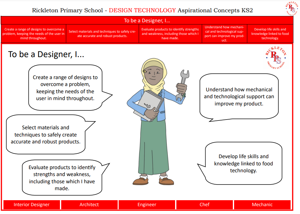 In September 2023, we introduced our 'aspirational concepts' to support children and staff to understand the key skills and knowledge which they are building when studying a subject and where this could lead them in their future. We want our children to be driven by their future possibilities and see each lesson as a stepping stone towards this.