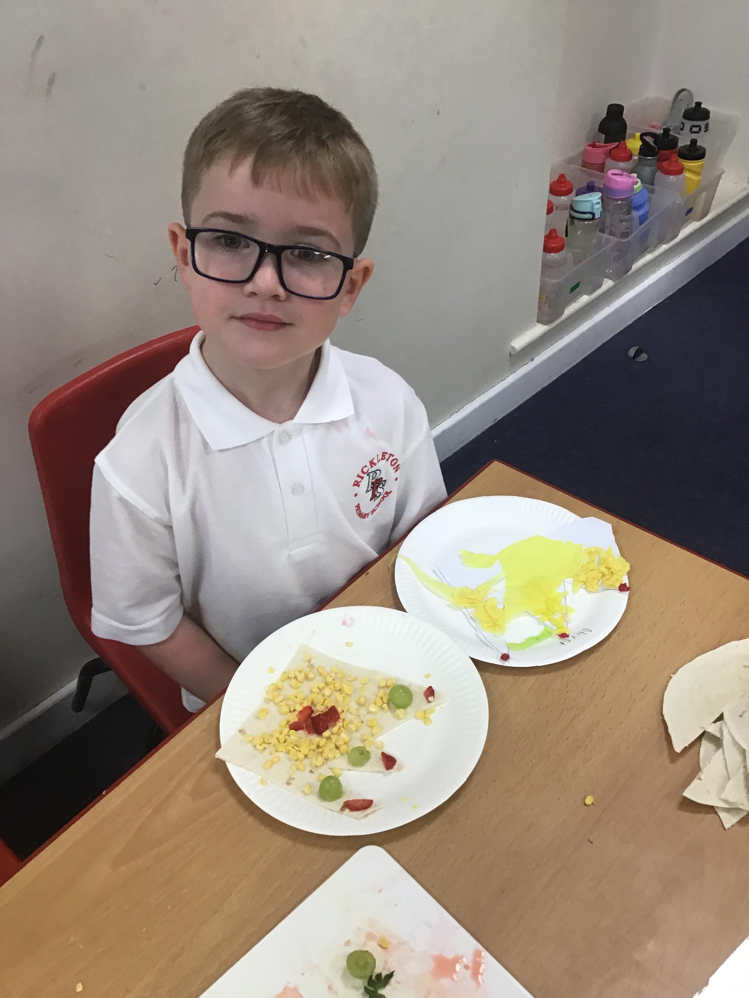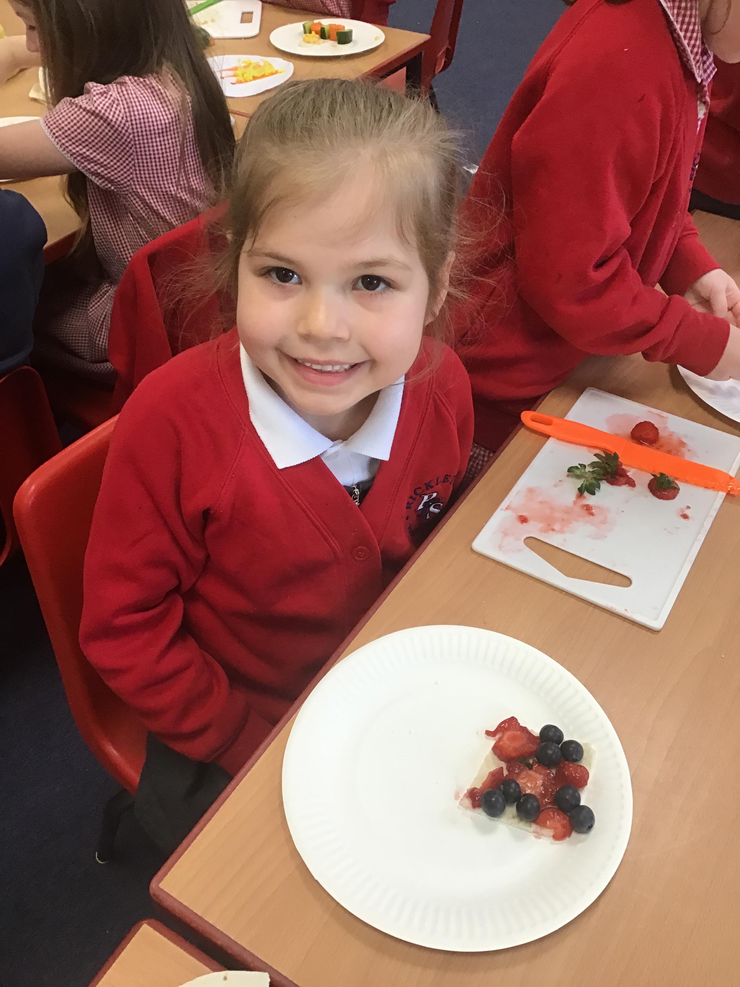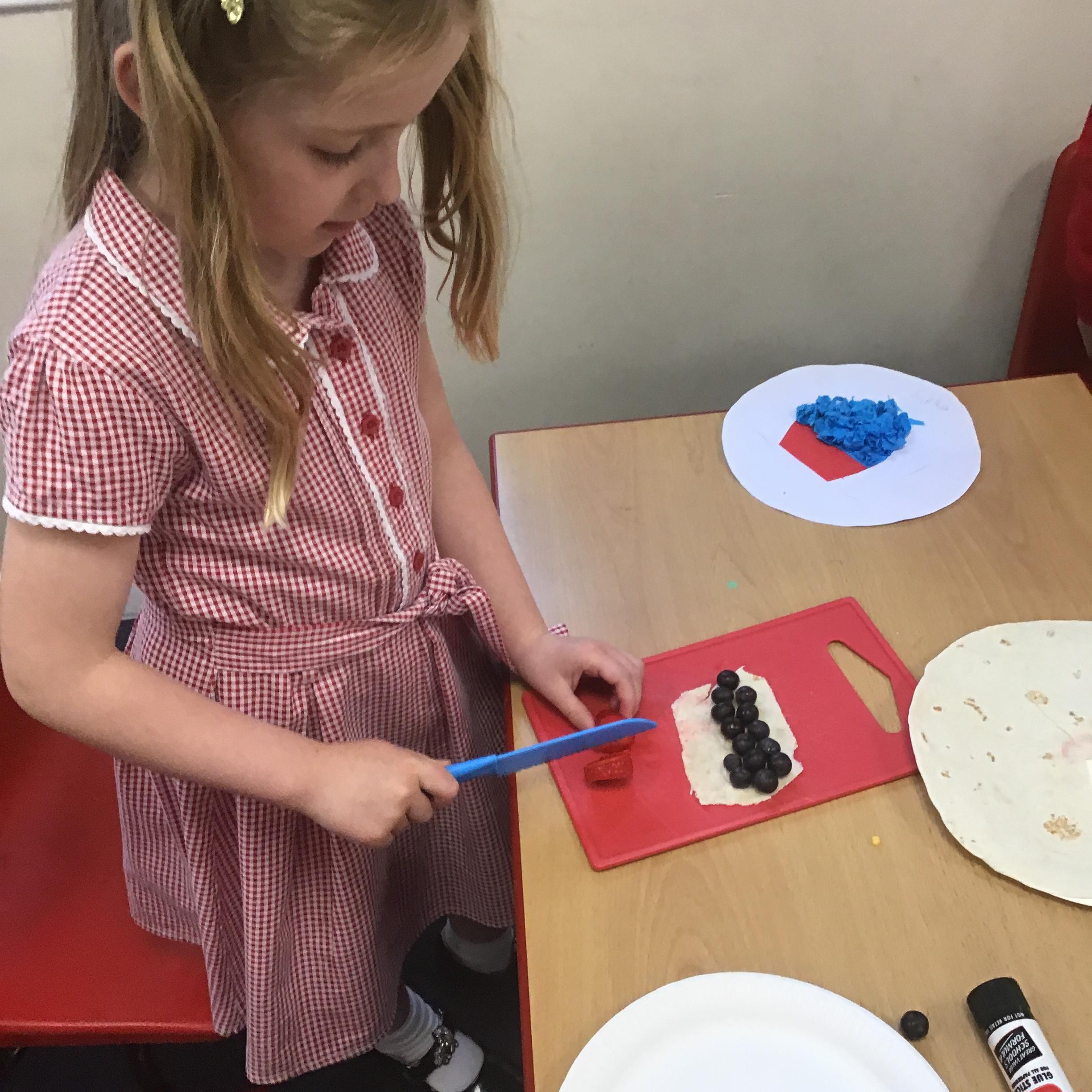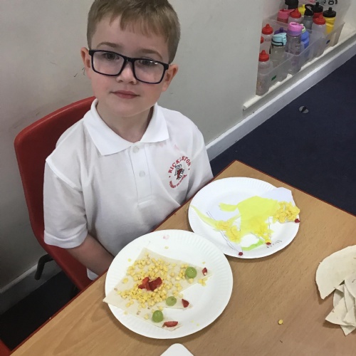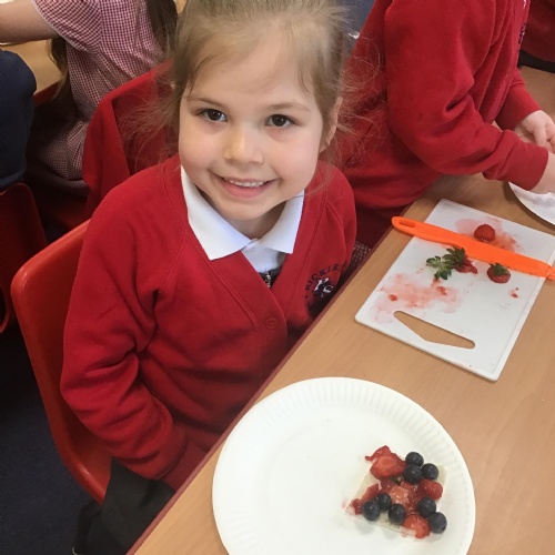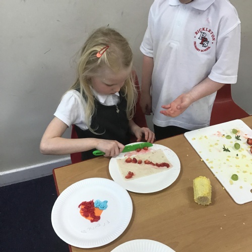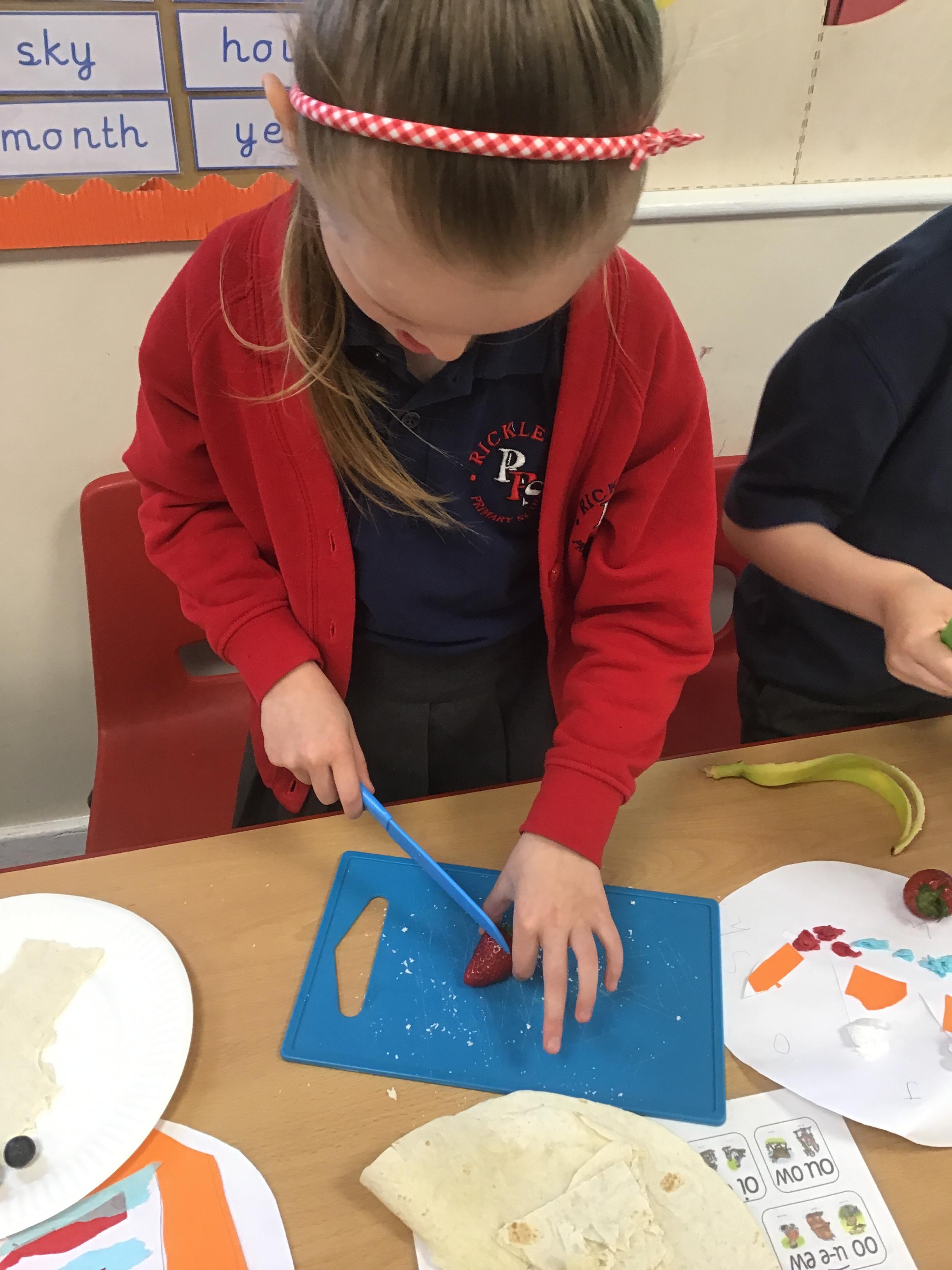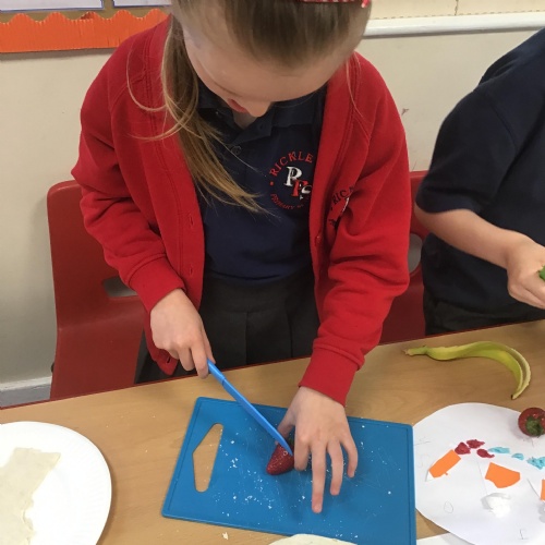 In Design Technology we learnt how to use a knife safely to slice and dice. The children have learnt 2 different techniques to ensure they use a knife safely when preparing food - the claw technique and the bridge technique. The children enjoyed eating their own creation. I think we may have some buddying chefs in the making.