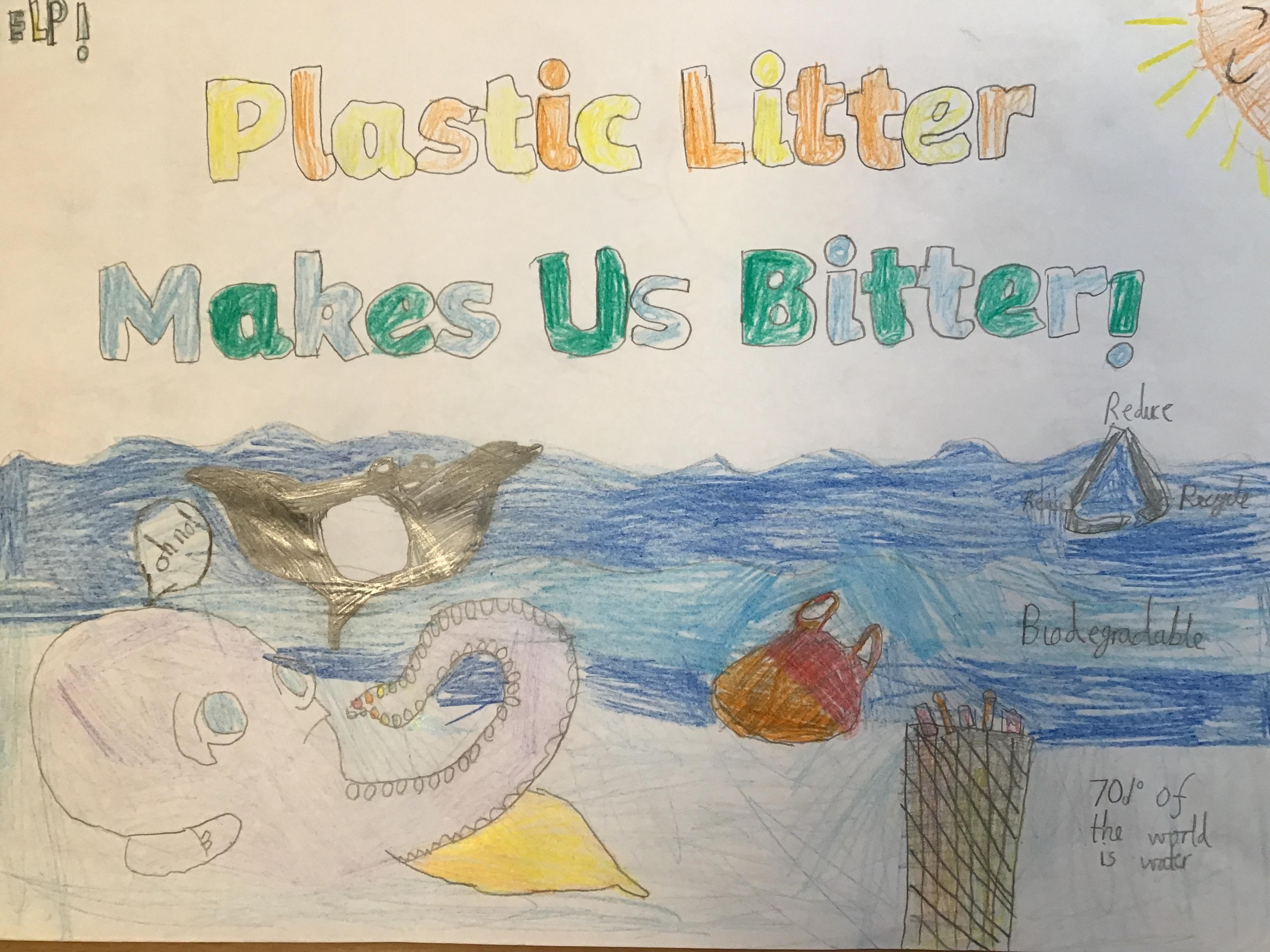 Children in KS1 learnt about plastic pollution in marine habitats. They created posters to encourage people to protect sea creatures and look after marine habitats.