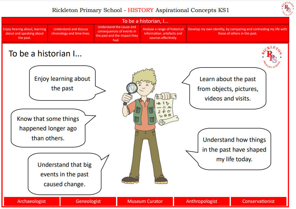 In September 2023, we introduced our 'aspirational concepts' to support children and staff to understand the key skills and knowledge which they are building when studying a subject and where this could lead them in their future. We want our children to be driven by their future possibilities and see each lesson as a stepping stone towards this.
