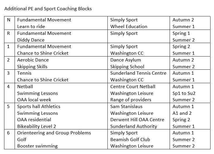 We have forged strong links with several local clubs and many of or children access these clubs, a good proportion due to experiences they have begun in school. Relationships currently exist with Birtley Town Football club, Washington United football Club, Fast Feet Football Coaching, Simply Sport Multi Activity Coaching, Apollo Trampoline Club, Birtley Harriers, Washington Cricket Club as well as directing families to events such as the Chester le Street Park Run.