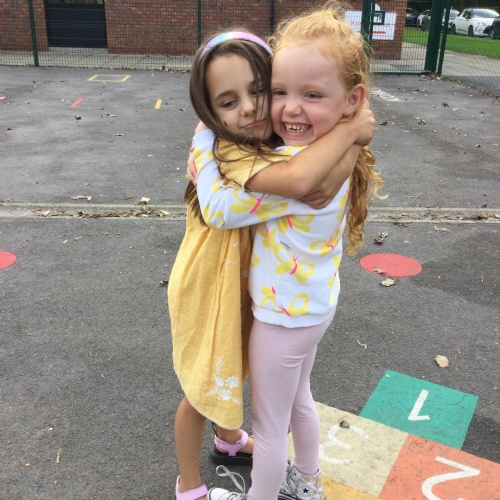 The Peer mentors receive their badges so they are easily identified by other pupils. They work on each of our yards at break times and lunchtime.