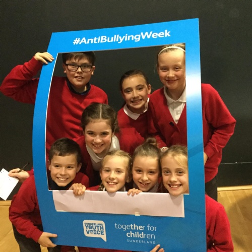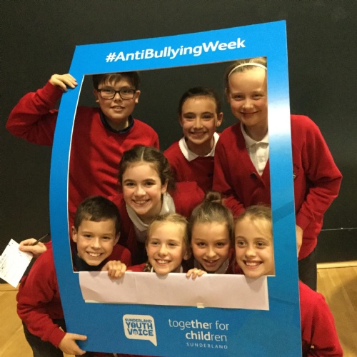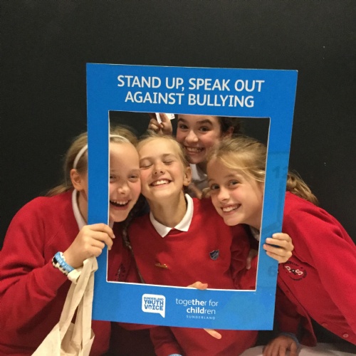 Our Peer Mentors visited an anti-bullying conference at Washington Academy. They spent time with pupils from other primary and secondary schools sharing their ideas and experiences from their schools. Several speakers then worked with the children to review anti-bullying understanding and ways peer mentors can support children in their schools to prevent bullying. We were so proud of the types of questions our peers mentors asked and how well they talked and worked with many other children and adults.