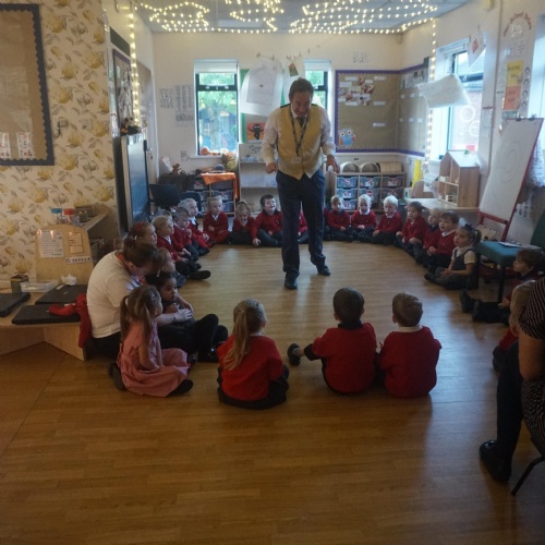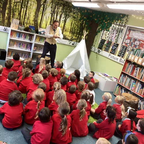 We love our school library and, in 2022, it was rebranded from 'Starbooks' to 'Jungle Books'. We were very excited that author, Chris Connaughton agreed to come and officially open it. He spent some time with every class telling stories and reading books as shown below.