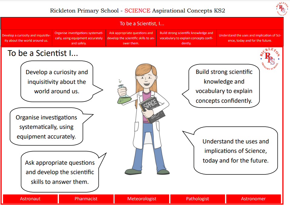 In September 2023, we introduced our 'aspirational concepts' to support children and staff to understand the key skills and knowledge which they are building when studying a subject and where this could lead them in their future. We want our children to be driven by their future possibilities and see each lesson as a stepping stone towards this.