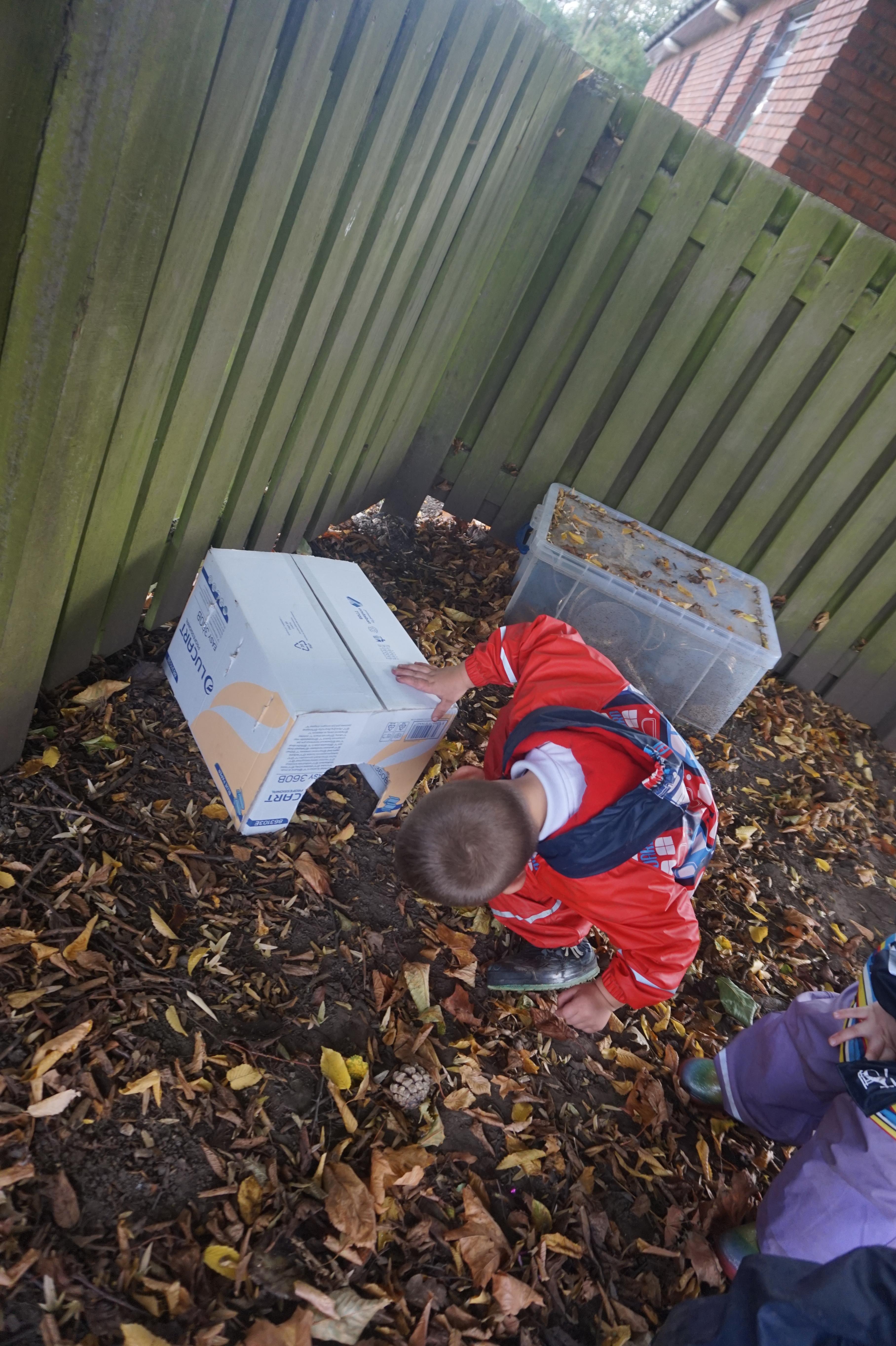 In Nursery, we have enjoyed taking part in weekly ‘Forest School’ themed sessions. Our sessions begin with a story and then we complete follow up activities, linked to the story. So far, we have read ‘Stick Man’ and foraged for our own sticks and made our very own Stick Man. We have read ‘We’re Going on a Leaf Hunt’, where we explored the school grounds for different sized and coloured leaves and we have also enjoyed the story ‘The Very Helpful Hedgehog’, where we then made our very own hedgehog hotels.